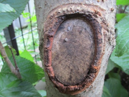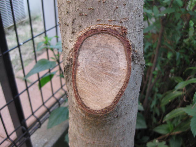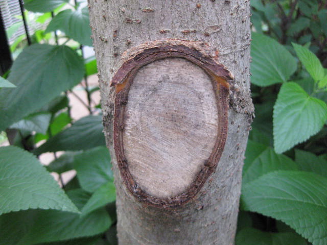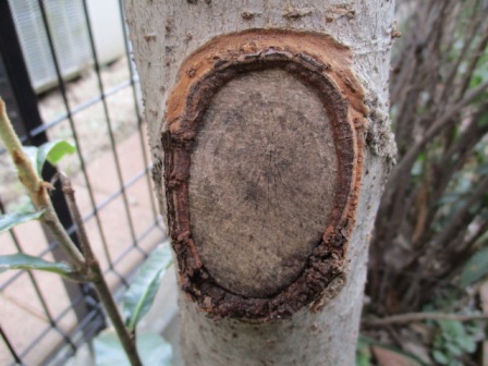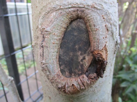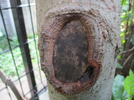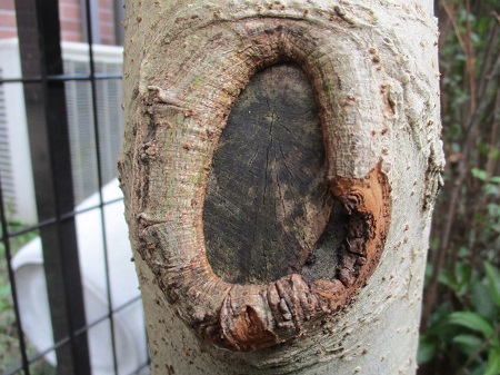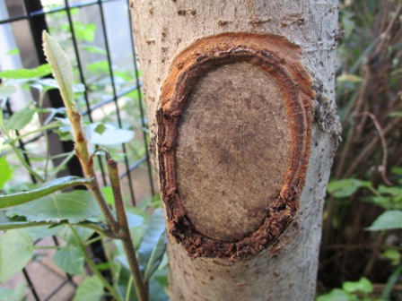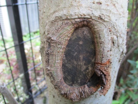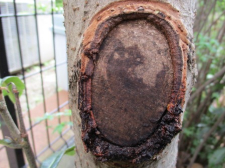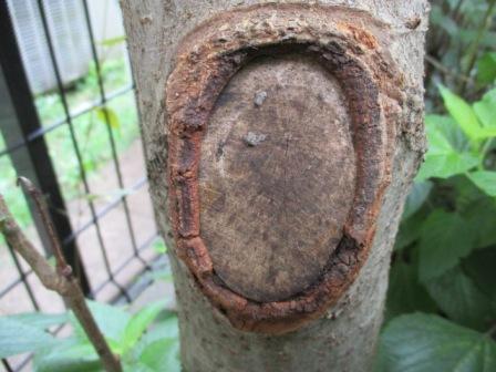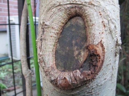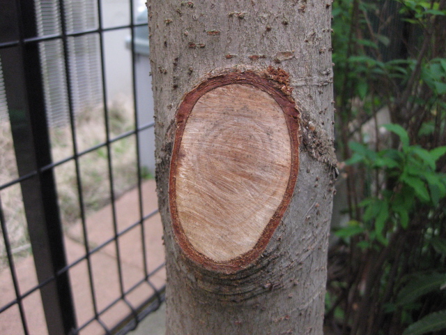 2019/7/5 右下の樹皮が剥がれ落ちました。